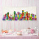 Elegant Watercolor Skyline of Portland, largest city of Oregon, sits on the Columbia and Willamette rivers, in the shadow of snow-capped Mount Hood