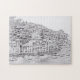 Challenge your puzzle making skills with this pencil sketch black and white image of romantic Portofino, Italia.
