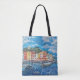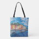 shopping bag with a print of a painting of the village of Portofino