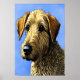 Portrait of a cute and adorable Airedale Terrier on a blue background. This is a AI generated art.