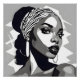 This digital painting features a portrait of a black woman. The woman is looking directly at the viewer, and she has a calm and confident expression. Her skin is a rich, dark brown, and her hair is styled in a simple