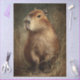 A detailed illustration of a capybara standing in its natural habitat among grass.