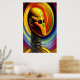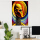 A portrait of a yellow robot on a colourful background. This is a AI generated art.