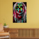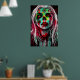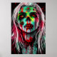 Portrait of a colorful face zombie lady with long mostly white hair. This is a AI generated art.