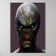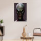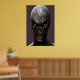 A portrait of a dark skin alien with dark eyes and a scary looks. This is a AI generated art.