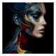 An abstract portrait showcasing a woman's face in profile using stained glass technique. A portion of her face and neck are adorned with intricate abstract designs featuring golden lines and textured filling. The full spectrum of colours creates a vibrant and artistic masterpiece, making this a truly beautiful and captivating piece of art.