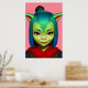 Portrait of a women human goblin with green skin, half long blue hair. (Half human, Half goblin). This is a AI generated art.