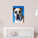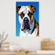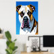 Portrait of a cute and adorable American Bulldog on a blue background. This is a AI generated art.