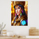I asked the AI to make a portrait of the Greek Goddess Athena, here with blue eyes and blue purple hair and gold colored clothes. she is associated with wisdom, warfare, and handicraft. This is a AI generated art.