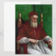 This design features a painting by the Italian Renaissance artist Raphael (1483–1520). It is a portrait of Giuliano della Rovere, Pope Julius II, elected in 1503 after one of the shortest conclaves ever. Pope Julius II commissioned some of the greatest works in western history, such as Raphael's decorated rooms in the Vatican and Michelangelo's Sistine Chapel ceiling. However, Pope Julius II was depressed when this portrait was painted because the city of Bologna had seceded from the papal states. He expressed his grief at this political disaster by growing a beard, imitating what Renaissance humanists had discovered was an ancient form of mourning. The original artwork was painted by Raphael circa 1512.