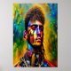 A colourful portrait of a solider in a unique uniform with a colourful background. This is a AI generated art.