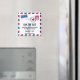It was a bit smaller than expected, but I was too excited to check dimensions. The product itself send well printed though the grey text is a bit paint. Magnet worked perfectly on my fridge.