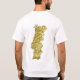 The front of this t-shirt bears a small Portuguese flag with its familiar offset coat of arms over a green and larger red vertical band, while the back displays a relief map of Portugal. Available on t-shirts, sweatshirts, polos, long-sleeves and more.