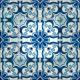 Vintage blue watercolor portuguese azulejos ceramic tiles mandala floral pattern on a white background.