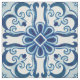 Portuguese Azulejos Blue Floral Tile Pattern Fabric