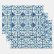 Portuguese Azulejos Blue Floral Tile Pattern Wrapping Paper Sheet