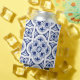 This product has an intricate design with a dark blue background and white ornamental patterns. The design is reminiscent of traditional ceramic or porcelain styles, which may interest those who appreciate classic or vintage aesthetics.