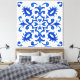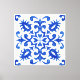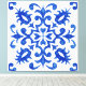 Elegant blue and white Portuguese ceramic tile featuring a central round medallion and simple round floral ornaments in each corner. Inspired by classic Lisbon tilework, this clean and timeless design is perfect for customisation — ideal for names, dates, or meaningful phrases.