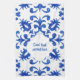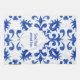 Elegant blue and white Portuguese ceramic tile featuring a central round medallion and simple round floral ornaments in each corner. Inspired by classic Lisbon tilework, this clean and timeless design is perfect for customisation — ideal for names, dates, or meaningful phrases.