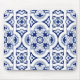 This product has an intricate design with a dark blue background and white ornamental patterns. The design is reminiscent of traditional ceramic or porcelain styles, which may interest those who appreciate classic or vintage aesthetics.
