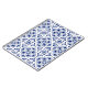 This product has an intricate design with a dark blue background and white ornamental patterns. The design is reminiscent of traditional ceramic or porcelain styles, which may interest those who appreciate classic or vintage aesthetics.