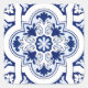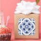 This product has an intricate design with a dark blue background and white ornamental patterns. The design is reminiscent of traditional ceramic or porcelain styles, which may interest those who appreciate classic or vintage aesthetics.