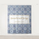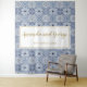 Elegant wedding backdrop with blue tiles, personalised with your names and date.