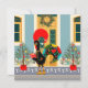 The Portuguese Rooster stands in front of the house holding a carefully picked Christmas present that he's about to deliver. The act captures the essence of the season, the joy of giving. This whimsical illustration embraces the true spirit of the season in Portugal. In addition to the friendly Galo de Barcelos, this product has also Portuguese traditional blue and white tiles. As this item is intended to send greetings of a Merry Christmas, they have holly leaves and berries as well as floral motifs. All text is personalizable.