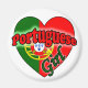 Leuke magneet met een hart afgebeeld met de Portugese vlag erop. Op de tekst staat: Portuguese girl De achtergrond is in de kleur wit. Leuk om te geven als cadeau of voor jezelf om te laten zien dat je trots bent om Portugees te zijn. kleuren: groen, rood en geel