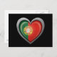 This patriotic design features the flag of Portugal inside of a heart shape. The flag is covered with a light rough texture which gives the pattern an aged look with a three dimensional effect. A metallic frame surrounds the flag which has the look of being made of solid steel. This unique Portuguese pattern is perfect to show off your love of country.