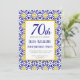 Portuguese tiles, blue, white and yellow pattern, rustic Azulejo, Mediterranean 70th Birthday party invitations. Personalise it with your details.