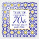 Portuguese tiles, blue, white and yellow pattern, rustic Azulejo, Mediterranean 70th Birthday party Thank you stickers. Personalise it with your details.