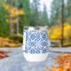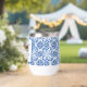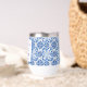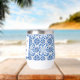 Portuguese tiles, blue, white and yellow pattern, rustic Azulejo, Mediterranean Bridal shower wine tumbler. Personalise it with your details.