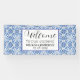 Modern, elegant, Portuguese tiles, blue and white, Spanish, Italy, Mediterranean, summer Wedding Welcome banner. Perfect for newly weds. You can personalise it with bride and groom's names and date.