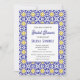 Portuguese tiles, Mediterranean, blue, summer, pattern invitation. Elegant, beautiful, bridal shower invitations. Hand painted watercolor bluebonnets by myself. Personalise it with your details.