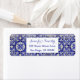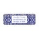 Beautiful, elegant bride and groom Wedding Return Labels. Portuguese tiles, vintage floral pattern, blue and white, Spanish, trendy design. You can personalise with your names and address.