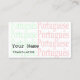 Business cards for Portuguese translators and interpreters. The design features elements of the Portuguese flag constructed from repetitions of the words Portuguese and Português.