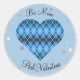 Posh Argyle Blue Sparkle Big Heart Classic Round Sticker