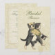 Fun customisable Bridal Shower invitation. Fun Save the Date design. Sweet vintage bride cat holds a white rose wedding bouquet and Groom cat struts beside her with his black top hat. Ivory floral background. Customise with your names and wedding date text.