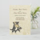Adorable customisable floral damask Wedding invitation. Sweet vintage bride cat holds a white rose wedding bouquet and Groom cat struts beside her with his black top hat. Ivory white floral damask background. Customise front and back of this invitation with your names and wedding information.