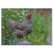 This cutting board features a barred rock hen posing on a wooden mushroom in a herb garden in Connecticut