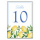 Vibrant yellow watercolor lemons accented with powder blue and cobalt blue decorate these party table numbers. With regards to the pale blue frame / border, you can change the colour of this by changing the border colour of the rectangle layer on each side (enter the design tool by clicking / tapping to personalise further). ****Please be aware that you will need to change the number on each card and add separately to your cart***
