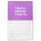 Use the law of attraction to manifest more abundance than you can imagine! Each month features a powerful positive affirmation focused on wealth, success, and abundance. The month's background colours closely represent the birthstone gemstone colours. A birthstone chart is included on the back for easy reference. Tap into your power and take control of your life this year.