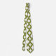 This tie has a mid-century modern design of connected circles with a retro star in the middle. The star in each circle is the same shape as the space between the circles, forming an optical illusion.