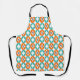 This apron has a design of circles and stars in teal and orange with starbursts in some of them.