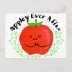 This piece is designed with a bright red apple character clasping hands in a calm zen-like happy state.