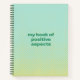 This notebook features a teal to grass green gradient and a chunky green title that says 'my book of positive aspects'. It's is a great place to write down things you are grateful for in your life. A good gift for fans of the Law of Attraction and Abraham-Hicks. ••• Art by JessicaAmber. Uploaded 25 Nov 2022. Last updated 25 Nov 2022. ••• For more law of attraction artworks, visit my Zazzle store https://www.zazzle.com/store/jessicaamberartist ••• Or check out my website www.jessicaamber.com.au