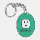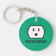 Positive Energy funny green wall plug socket Keychain . Custom colour keychains with smiling electrical outlet aka jack. Personalise with custom text and colours.