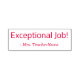 This inspiring rubber stamp design features the encouraging message "Exceptional Job!" and a custom educator's name. It could be used by a teacher, educator, or tutor when grading student work, to acknowledge that a student has done an exceptional job.