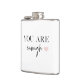 Well made flask, a little better than I had expected. Flask came in clear plastic box which gave it a nice presentation when I took it out of the zazzle packaging. Image is not printed on flask but on sticker. Don't know how this will hold up I haven't used it yet. This would make a Great gift! I plan to purchase more for friends! Cheers. I thought a little brighter than computer. Very crisp, writing wasn't
